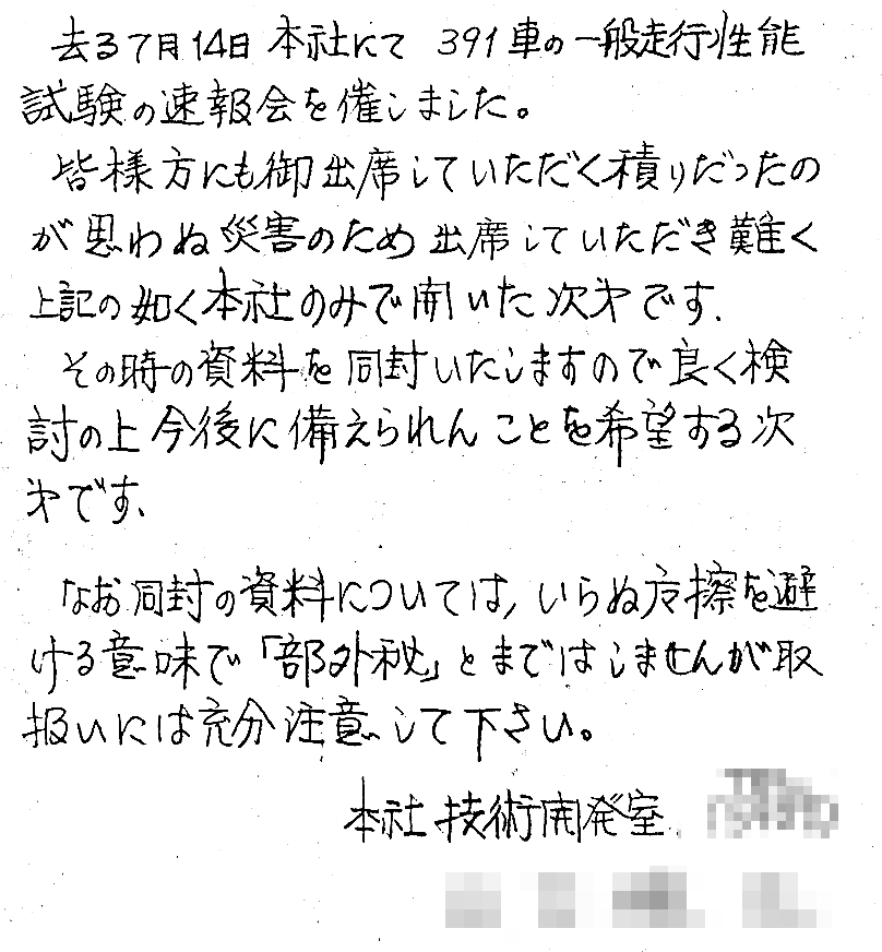 Test runs were performed on Sanin, Hakubi and Sanyo line. The year stated as Showa 37 (1962) but the correct year is Showa 47 (1972).