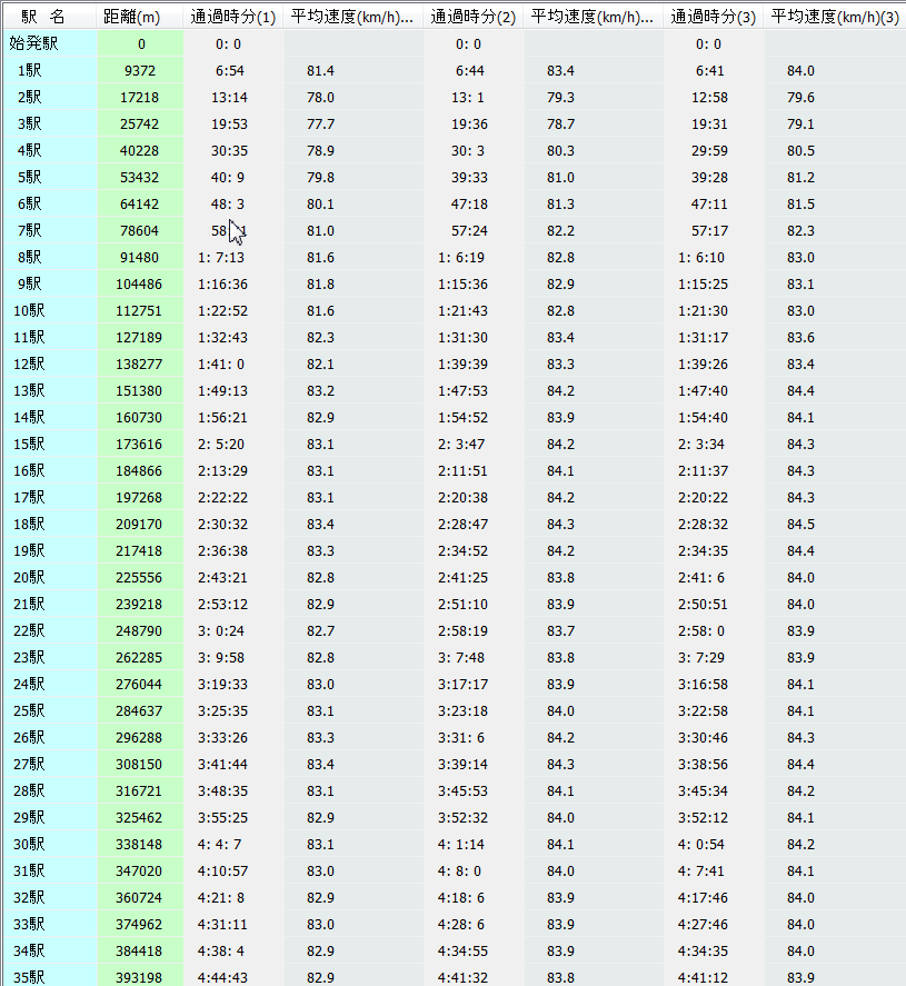 運転時分で見ると次の表のようになります。